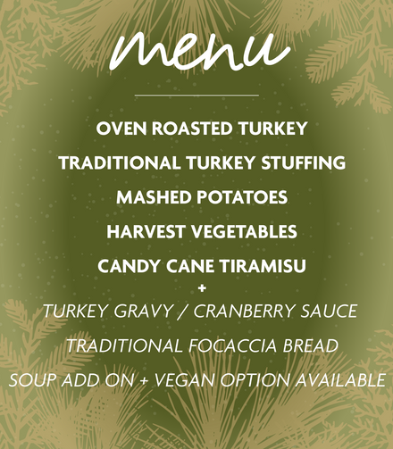 This Holiday Season, let us take the stress out of meal prep. Order your fully prepared Christmas feast, pick up, and simply reheat for a hassle-free holiday dinner at home!